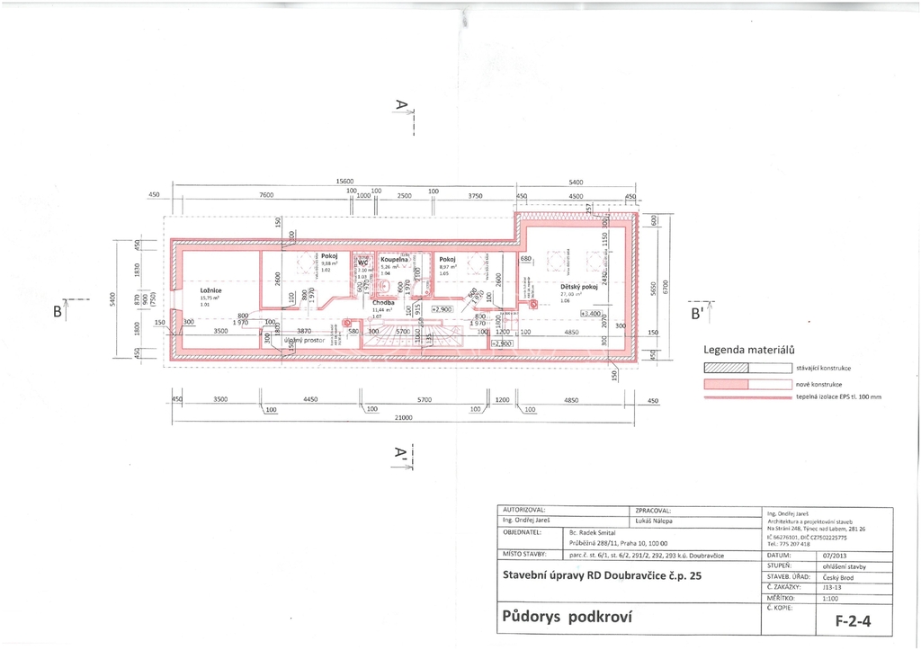 Vytápění: Teplovodní podlahové v přízemí, radiátory v patře, krbová kamna s výměníkem.